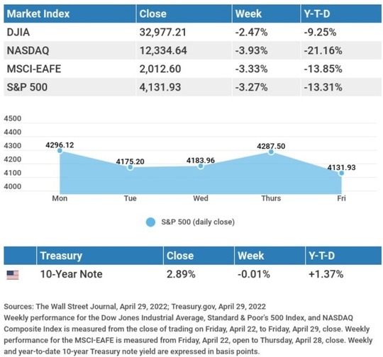 Trading was volatile in the final week of April as investors struggled with the crosscurrents of global economic growth anxieties stemming from widening COVID-related lockdowns in China and a fresh batch of corporate earnings reports.